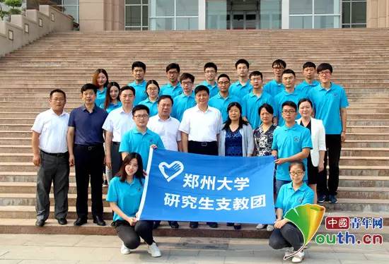 郑州大学领导与第十八届研究生支教团成员合影 誓言 “把歌声还给夜晚,把道路还给尽头,把云烟还给屋檐,把誓言留给青春。”