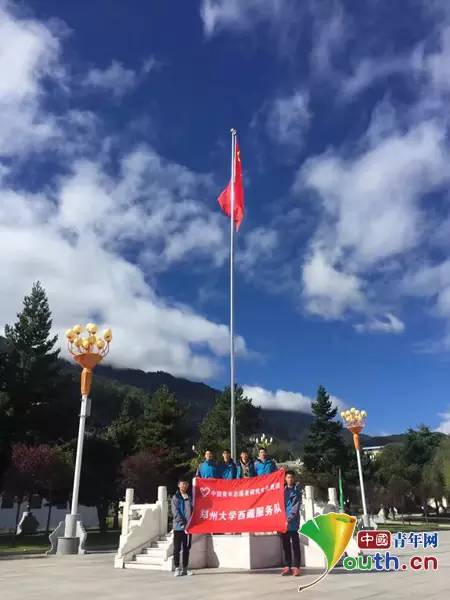 郑州大学研支团成员在国旗下为祖国庆生感受我们分队服务地是西藏农牧学院,由于人员紧缺,每一位队员干着内地两到三位老师的工作。再加上本科刚毕业,工作经验欠缺,辛苦不言而喻。工作的紧迫与繁重,不容我们退缩,我们唯有相互支持,交流心得,共同克服困难,尽自己最大的努力服务好学生,管理好事务。我在想,我们身上的责任一刻都不能放下,我们的敬畏之心一刻都不能抛弃,只有踏踏实实地做人,兢兢业业地工作,我们才能不辱使命!