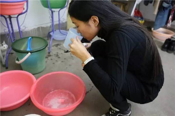 山区物质条件匮乏,宿舍里没有自来水,迟漫每天用盆接盆方式来解决漱口问题,漱口后这些水再用来浇花。