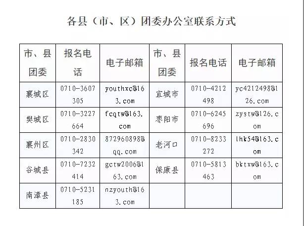 报名方式:选择意向志愿服务的县市区,并通过电话向各县(市、区)团委办公室报名。