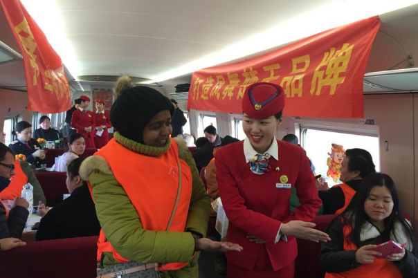 自2010年春运起,武汉铁路局团委成立志愿服务队伍,动员和引导广大青年以志愿服务方式参与铁路春运工作。7年来,3000余名志愿者响应号召,走上公益道路。来自华中师范大学对外汉语教学专业的斯里兰卡博士留学生佳妮今年是第二次做春运志愿者了,在她的带动下,好朋友们也成为“小桔灯”行列中的一员。他们纷纷表示,在自己国家做过很多志愿活动,但是服务春运还是头一次,可以从春运这个万花筒中感受浓浓的中国年味。