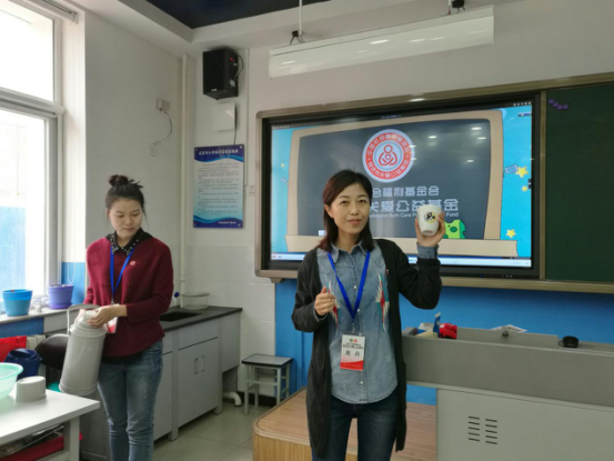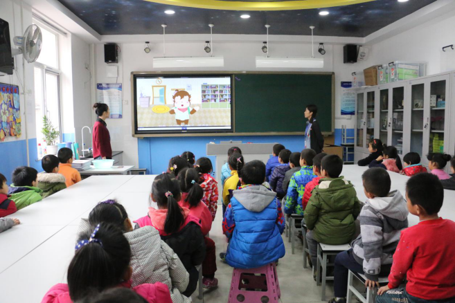 11:20,“远离烫烫小怪兽儿童课堂”在电厂路小学科学教室展开,参加科学实践课的有北京市石景山区电厂路小学书记、德育主任、中国社会福利基金会烧烫伤关爱公益基金执行主任张代玉、北京爱无痕烧烫伤康复关爱中心主任周丹,还有45名可爱的小学生。
