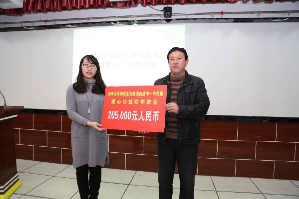 1.“助梦1+1”项目由志愿者们向社会爱心人士筹集爱心资金,用来资助家庭贫困但品学兼优的学生完成高中学业。2016-2017学年,“助梦1+1”第二期由清华大学校友田峰先生支持15名学生,本学年共资助34900元。十八届研究生支教团的志愿者们通过积极联系社会各界爱心人士,为21名学生筹集了助学资金170100元。
