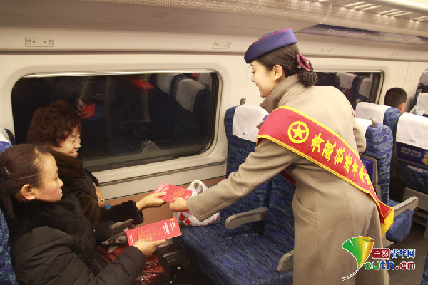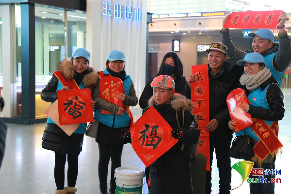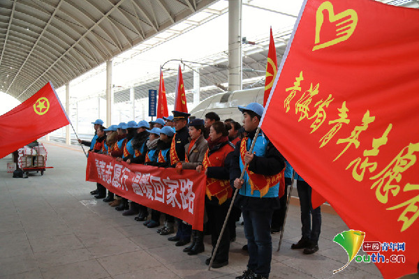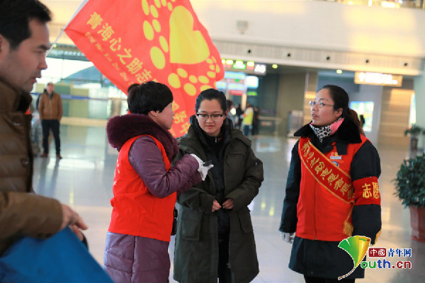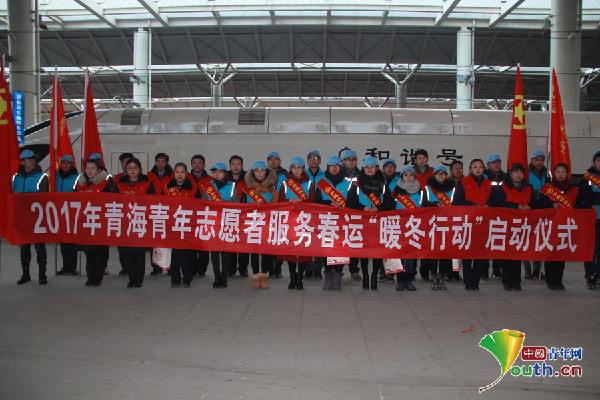 中国青年网北京1月16日电 (记者 朱梦琪) 1月13日春运首日,由共青团青海省委、青藏铁路公司主办,青海青年志愿者指导中心、青藏铁路公司团委等多部门联合组织的“青春志愿行温暖回家路”——2017年青海青年志愿者服务春运“暖冬行动”在西宁火车站、西宁汽车客运中心站、8个市州同步启动,此次共招募600名青年志愿者在全省各地开展为期40天的春运志愿服务工作。为更好地服务春运,青藏铁路公司当天开设了2017年首列以“共青团号”命名的动车。