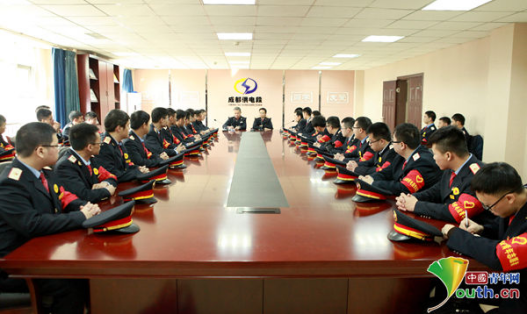 1月12日,成都供电段组织召开以“幸福暖冬、青春同行”为主题的春运“共青团号”增开列车乘务员动员会。中国青年网通讯员 胡志强摄