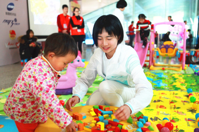 上午9点,火车东站,人头攒动。在上下电梯处、在检票口、在行李处、在购票厅,志愿者们的身影穿梭在人流中,一遍又一遍不厌其烦的解答返程旅客的问题,一次又一次弯腰为旅客搬运行李,一次又一次地说“请扶好扶手,注意脚下!” 真诚的服务,亲切的微笑,让五湖四海的人感受到了家的温暖。而在候车大厅内,丰富多彩的主题活动吸引了乘客的驻足。“这里是‘互联书香’您可以挑选一本自己喜欢的杂志带上车去阅读”!这里有‘爱心坐垫’,如果您是无座票可以送您一个坐垫!您可以把孩子带去我们的‘快乐圆梦’区,那边有志愿者哥哥姐姐陪他们做游戏!”……志愿者热情地介绍服务项目,耐心地解答各种问题,让返乡客候车时的焦急心情慢慢化开,变成一句句由衷的“谢谢!谢谢志愿者!”