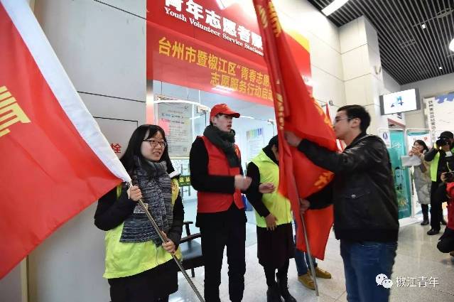 此次活动与往年不同的是:我们还于昨日同一时间启动了台州客运东站的志愿服务,由洪家街道团委组织青年志愿者为东站的旅客提供各种服务。