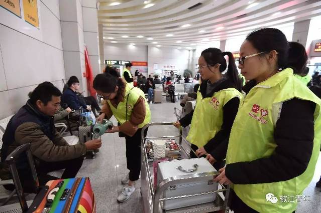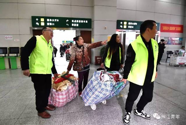 春运回家,每个人都是满满的行李年货,拎不过来,没关系,志愿者帮你提,稳妥地送你上车,是不是有很爱?