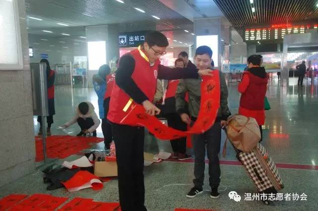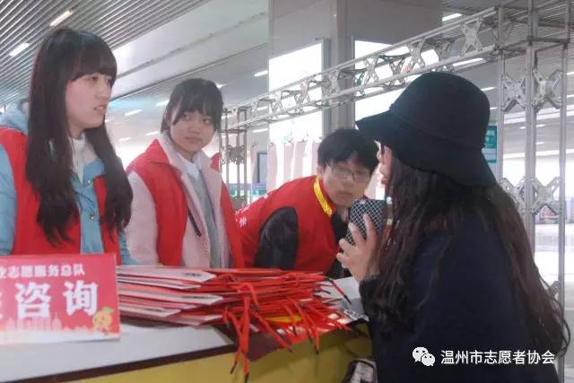 当天来自机关、高校、企业、民间的14支志愿者服务队在铁路温州南站进站口、出站口、候车厅和公交站等处设置志愿服务站点,开展了各种形式志愿服务活动。