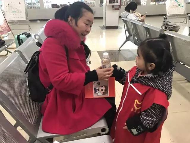 小小志愿者也参与到春运服务中来
