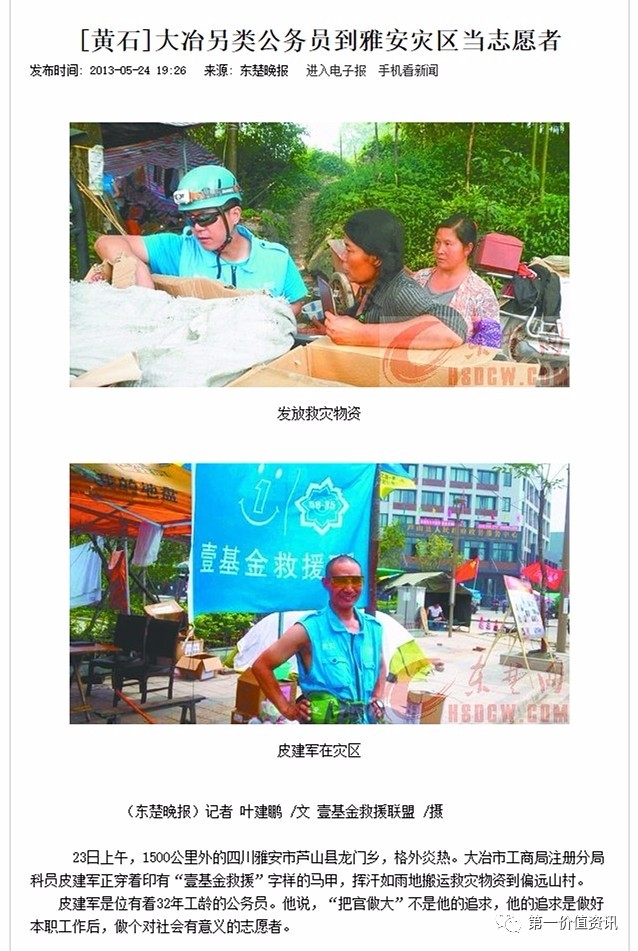 皮建军——为了救援而提前退休,因为救援而耗尽工资,哪里有灾难就奔向哪里,从中国走向世界的纯粹志愿者!湖北省道德模范、中国好人的荣誉称号,彰显了他金子般的品德,体现了党、政府和人民对他的崇高褒奖!一个学习和掌握了太多救援知识及技能的志愿者,一个不知疲倦的志愿救援战士!