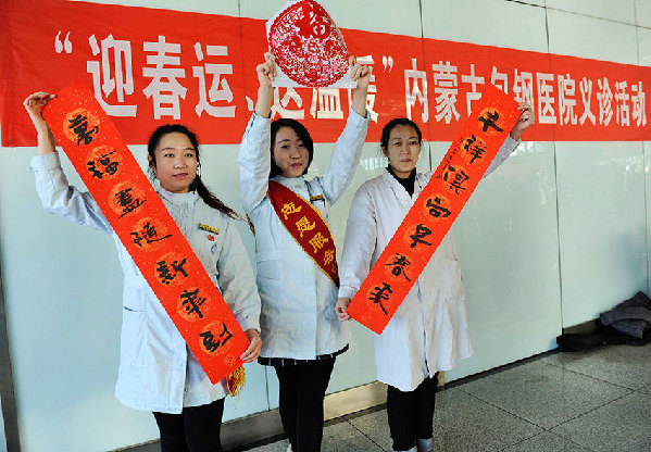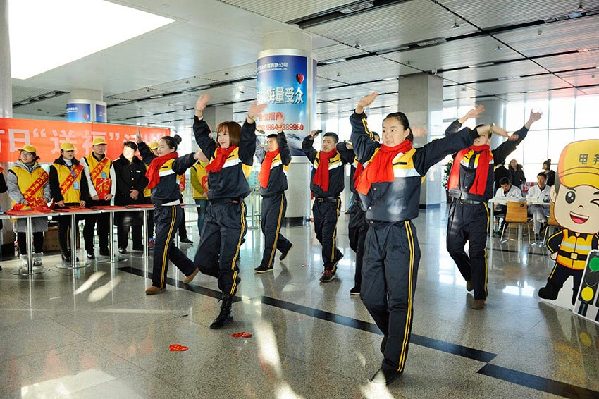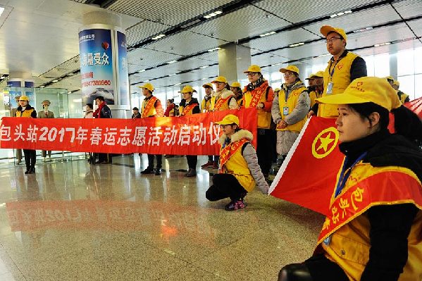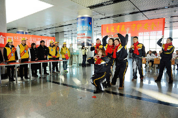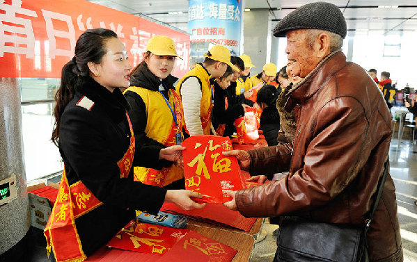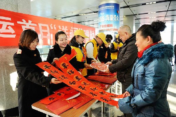 春运首日,包头站围绕“平安春运、有序春运、温馨春运”的目标,组织地区友邻单位以“送福”活动迎接春运首日,新招募的98名志愿者在候车室庄严宣誓,志愿服务活动正式启动。职工现场为旅客送出500多份春联、窗花,一线职工现场展示文艺节目。包钢医务人员为需要旅客提供义诊、急救等医疗保障服务。10多家媒体单位实地进行了采访报道,播报了首日客运组织情况,形成了较好的社会效应,得到旅客广泛赞誉。(王戈)