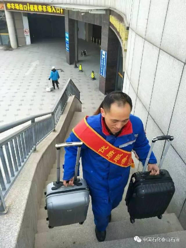 1月11日,中国石化泰山石油组织的“青年志愿者春运服务行”活动正式拉开帷幕,活动以“青年志愿行温暖回家路”为主题,在春运期间,组织加油站员工分别在泰山火车站、泰安火车站(高铁站)开展春运志愿服务,帮助车站维持旅客秩序,为旅客搬运行李,帮助老幼病残孕等旅客换车出站,提供道路问询等。