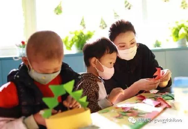 小陶虹为孩子们上手工课。由于药物的副作用,部分孩子的精细动作能力会降低,手工课可以帮助孩子们保持和提高精细动作能力