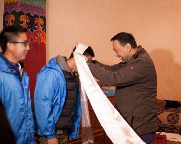活动最后,巴塔同志代表团区委、西部计划西藏项目办向留藏过年志愿者们敬献了哈达和发放了慰问金,为志愿者们送去团组织的关怀和节日的祝福。