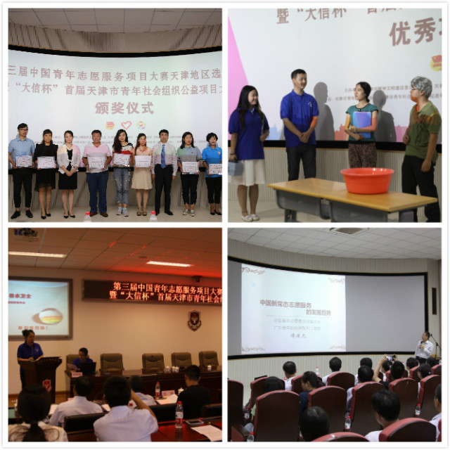 9月1日至2日,举办第三届中国青年志愿服务项目大赛天津地区选拔赛暨“大信杯”首届天津市青年社会组织公益项目大赛。