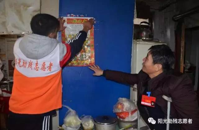 过大年家家户户贴春联是中国人的传统习俗,但对很多盲人和残友们来说,却并不是一件容易的事。腊月二十九日,“帮帮忙”志愿者们放弃在家里忙年的时间,首先来到了福海路辛康盲人按摩店,由于夫妻俩人都是盲人所以他们的生活和出行都有很多不便,“帮帮忙”志愿者们为盲人夫妻打扫了按摩店内的卫生和厨房的卫生、贴春联的贴春联,志愿者们分工协助很快完成了盲人按摩店的各项服务工作,忙完后“帮帮忙”志愿者还安排爱心专车把盲人丁淑文安全送回家中。