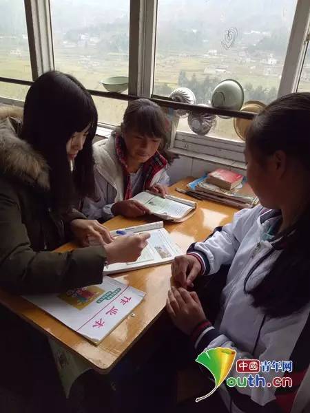 现在已经很冷,我们都纷纷裹上大棉袄的时候,学生还是一件短袖一件外套(校服标配),用冷水洗头洗脚,靠挤在一起取暖。一到饭点,每个人就捧着一个小碗在班级门口有秩序地排队盛饭,菜品基本上都是土豆、青菜,偶尔也有会有一桶丝丝缕缕的蛋汤。也许是冷水喝多了,也许是宿舍卫生不过关,前阵子学校里突然刮起来一股“干疮”风,严重的班级有将近30个学生被迫回家,整个学校人心惶惶。学校没有医务室,身体有一点不舒服就要下山,而大部分学生都会选择忍。我专门备了一个保温杯,盛满热水带去班里,有肚子疼或不舒服的同学就可以拿去喝。由于自己身体容易有些小病小痛,因此宿舍内备了一些治疗感冒、发烧、拉肚子的常用药,也因为此我成为了学生们口中的“药店老板娘”。
