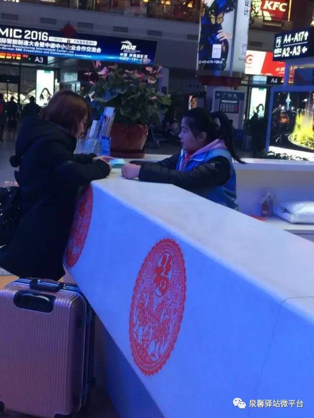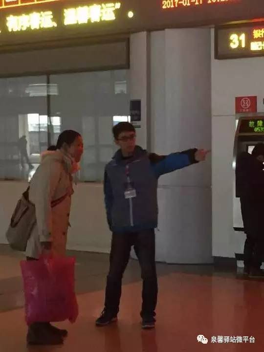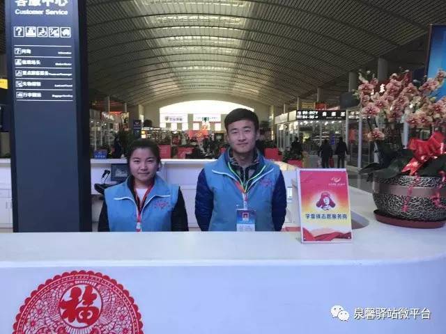 他们是来自山东职业学院的青年志愿者,春运期间,在候车厅、售票厅以及换乘服务中心提供志愿服务。