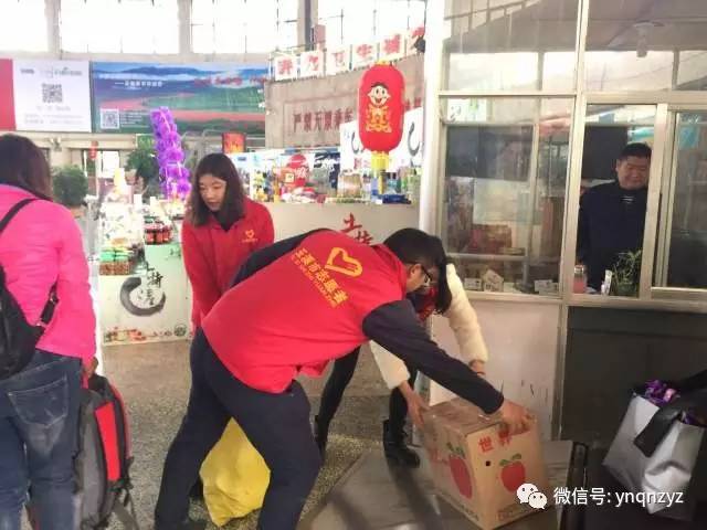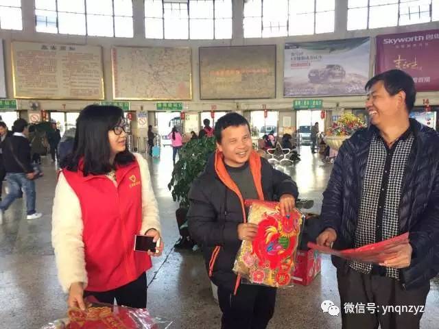 在玉溪汽车客运站售票和候车大厅内,青年志愿者们统一着“青年志愿者”红马夹,积极开展旅客疏导、行李帮提、微信购票推广、爱心义诊、药品供给、热水供应、手机充电、送对联等爱心服务。志愿者们以青春的热情和实际行动,为过往旅客提供有效的帮扶和关爱,给寒冷的早春带来了温暖,传递出浓浓温情与积极健康的社会正能量。