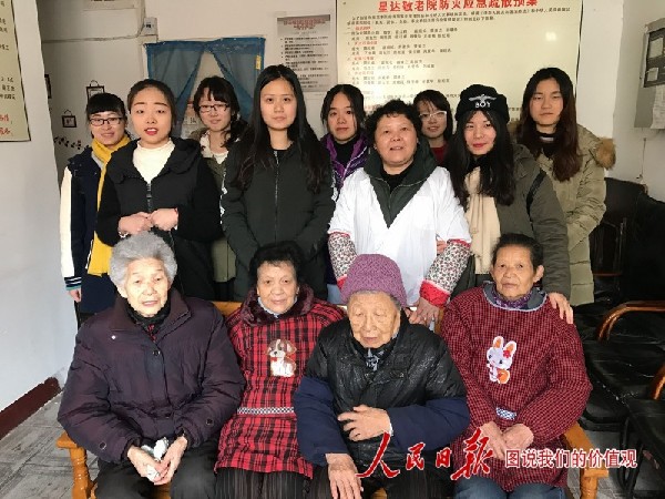 老人与志愿者们相处其乐融融