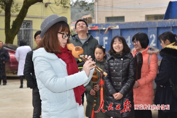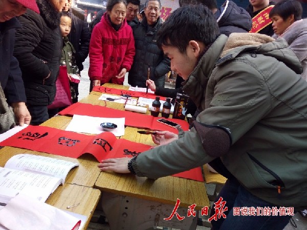 志愿者为家乡人民书写春联,送上新年祝福