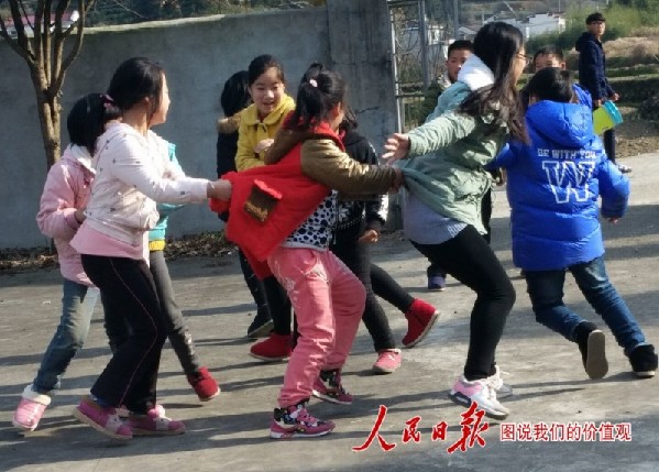 志愿者与孩子们玩游戏