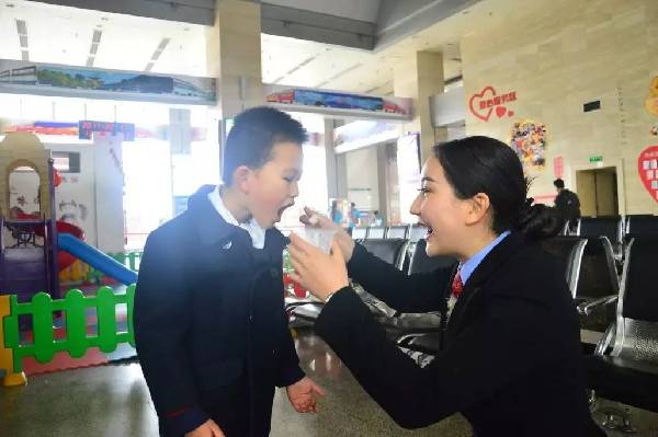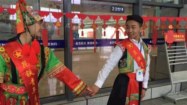过节怎么能少了猜灯谜,蒙自站的“蓝蓝”正与旅客互动