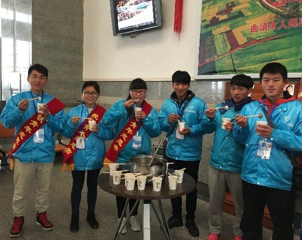 回到正题,今天昆明降温了,“彩云之蓝”志愿服务队的“蓝蓝”在车站渡过了一个难忘的“元宵节”,这是“蓝蓝”告别父母温暖怀抱的第一次“团圆”,这是“蓝蓝”暂别家人和“大家”相聚的第一个元宵,这也是“蓝蓝”人生路上一笔珍贵的记忆,小编与蓝蓝共勉,他们会带着这段美好,走出社会,走向美好!