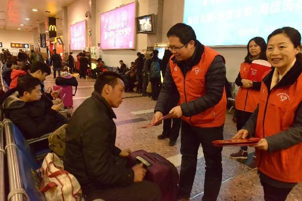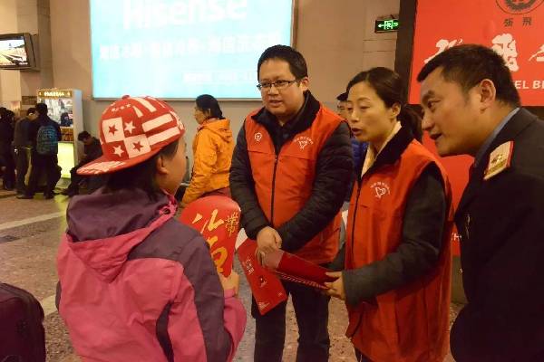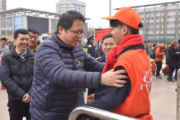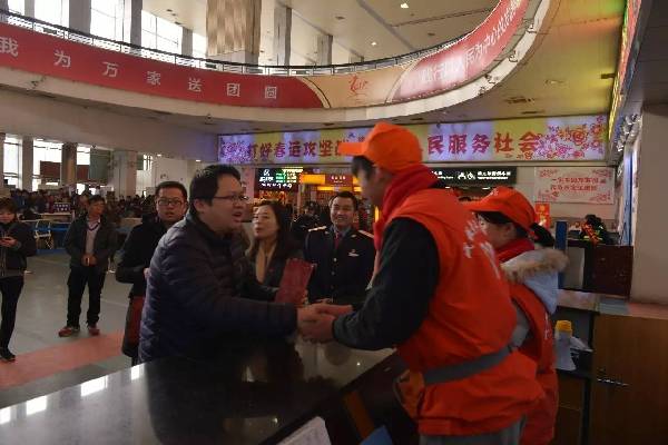 为了更深入了解志愿者工作,唐书记换上春运志愿者服装,加入到春运志愿服务中,为旅客送上新年祝福。