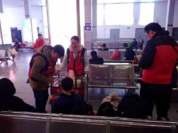 赵建华总是一手拿着手机,一手拿着列车列序表,在志愿者服务岗亭、候车厅检票口、自主取票区等岗位服务,从上午8点,一直忙到下午5点。而柯耀斌每天总是在售票窗口维持秩序、在检票口维持秩序、在车站帮助老弱病残孕以及带小孩的乘客提行李等。夫妻在各自岗位来回奔波。直到中午12点午休时间,他们吃盒饭的时候,才有空坐在一起休息一会儿。“以前坐火车时,我们总是接受着别人的帮助。一次指路、一次帮忙拿东西、一次嘘寒问暖,都让我十分感动。如今看着这些乘客在离开车站时给我们说声谢谢、说一声再见或者给我们一个微笑,我们都会觉得很幸福。”赵建华笑着说。