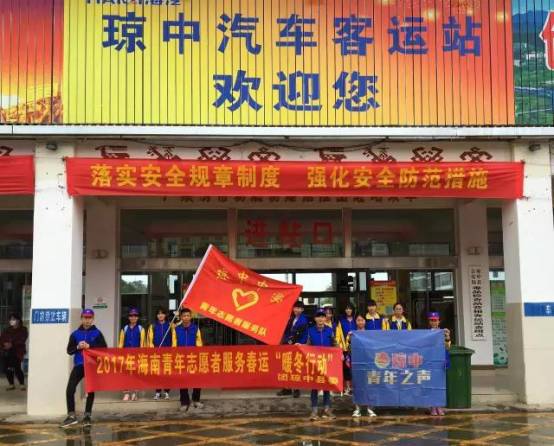 为切实缓解春运返乡潮导致的人员拥堵及乘客出行安全,由团琼中县委组织开展了2017春运“暖冬行动”,此次活动在琼中县汽车客运站设置了“暖冬行动”志愿者服务点,为旅客们提供防晕车药物、提供热水并进行禁毒、防邪教、交通安全宣传等服务。同时,积极配合车站做好“三导”工作,引导乘客安检,指引乘客及劝导乘客排队,帮助有需要的旅客搬运行李。活动中,志愿者积极引导,行动迅速地为乘客提行李,面对前来咨询的乘客,志愿者热心回答,耐心沟通,“您好”、“让我们来帮您搬行李吧”、“祝您一路顺风”,一句句贴心的话语,让即将上车的乘客倍感温暖。获得了乘客的一致好评,纷纷为志愿者竖起大拇指。