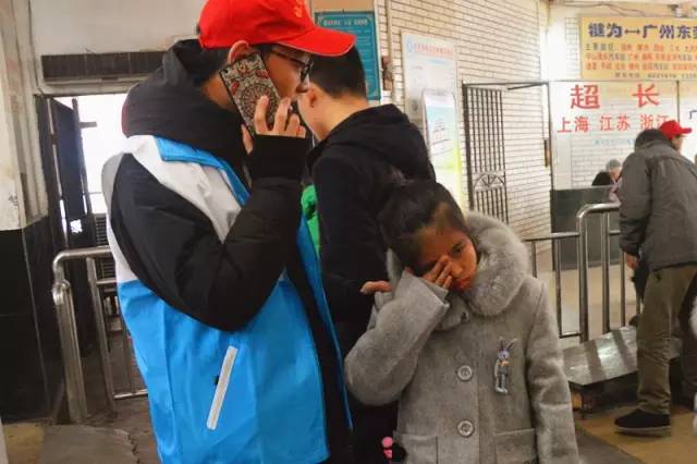 候车大厅川流不息的人群中,志愿者一面安慰着与妈妈走散的小女孩,一面给孩子的妈妈打电话,候车室广播不停地播放着寻人启事。在志愿者和热心旅客的共同努力下,终于找到了穿梭在车站候车室来回奔跑的小女孩的妈妈。