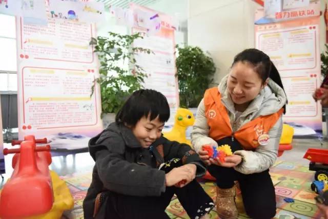 这间专门为“小候鸟”们创造的候车室,有6名幼师专业的志愿者。图片上笑靥如花的志愿女孩叫陈明霞,陪伴了无数孩子的候车时光,离别时,孩子们抱着她不肯走。