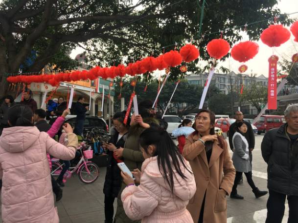 居民们兴致勃勃猜灯谜