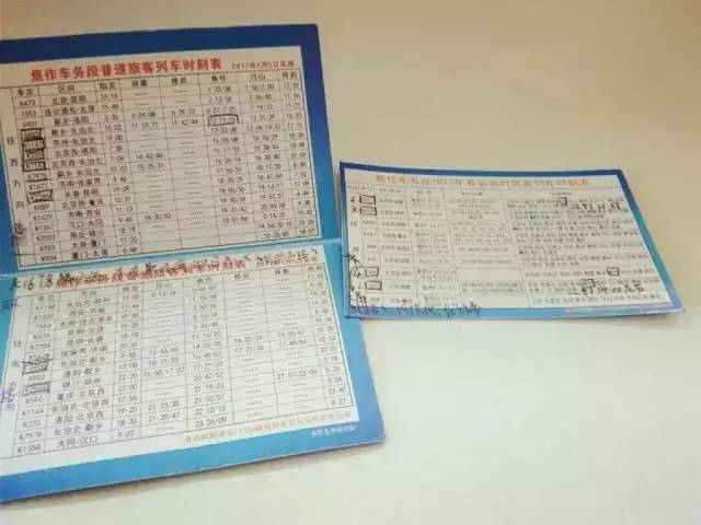 认真做笔记的时刻表为焦作站的旅客提供了更细致的信息