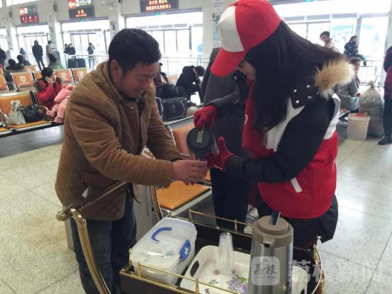 今年春运期间苏州市青年志愿者协会携手爱心企业和爱心人士,在苏州火车站和苏州各长途汽车站为候车旅客提供八宝粥,姜汤,包子,为长途站票的旅客发放折叠小板凳,将近2万名旅客感受到志愿者的热情服务和无私奉献。