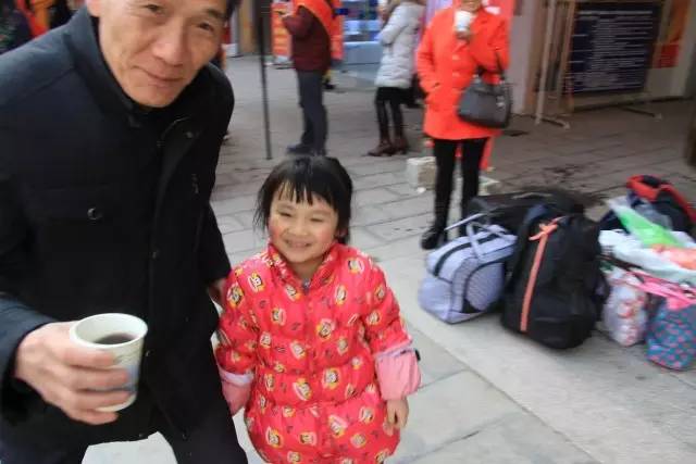 回乡的农民工所乘坐的长途汽车在客运公司的紧张部署下,一一抵达,在这席不瑕暖的时候,一名小女孩儿的身影吸引了大家的注意。小脸红彤彤的,乌黑的头发被汗水黏在了脸颊上。一双小手小心翼翼的将一杯杯热腾腾的姜丝可乐递送给回乡的农民工手中。