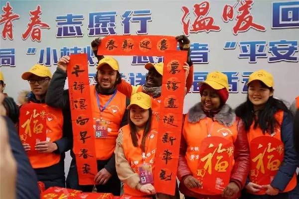1月20日是中国传统的小年,来自华中师范大学“洋雷锋”志愿服务队,不仅为旅客送来了饺子和春联,还为长期坚守在春运一线的武铁职工送来了温暖。