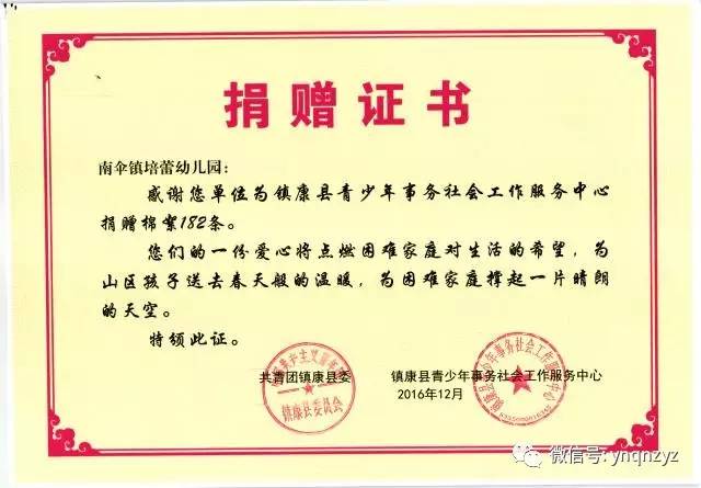 捐赠证书