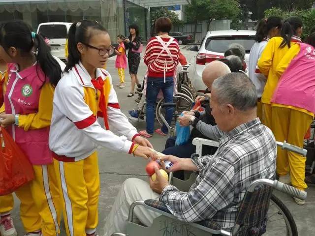 珠海市香洲区前山小学将前山敬老院做为德育教育基地,定期开展敬老活动,希望能通过我们的实际行动,传递爱的接力棒,给老人们带去物质支持和精神关怀,引起社会各界对老年人群体更多的关注。服务包括为老年公寓打扫卫生、帮老年人整理房间、慰问演出以及陪老人一起聊天,为老人送上食品等。