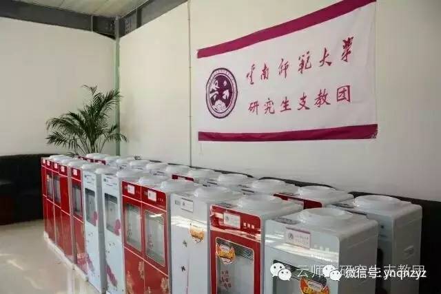 10月25日,云师大研支团将前期募集资金采购的饮水机送给龙泉中学的每一个班级,解决学生的日常饮水问题。龙泉中学副校长范怀香与研支团成员一起将饮水机送到学生手中。