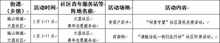 2017年学雷锋日,团市委吹响“助力创城志愿先行”志愿服务的集结号,全市32个社区(村)的57场活动蓄势待发,等待当代雷锋同志的到来。欢迎志愿者朋友们积极参与,携手共创全国文明城市!