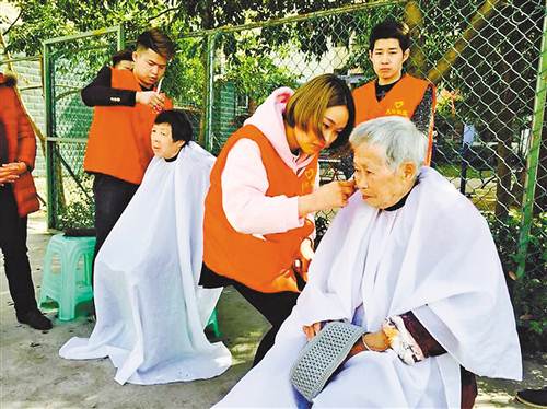 志愿者定期到小区,为行动不便的老年人理发。(天台社区供图)