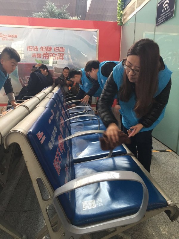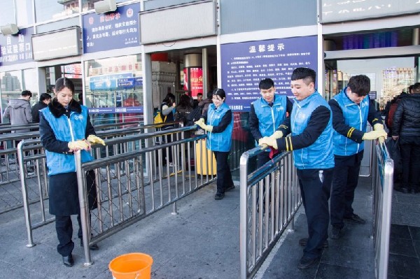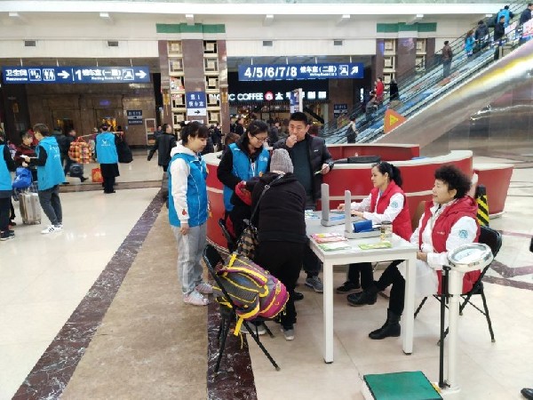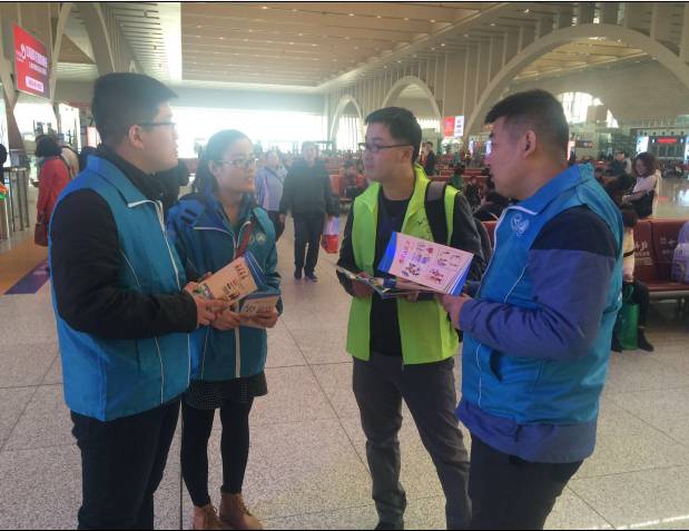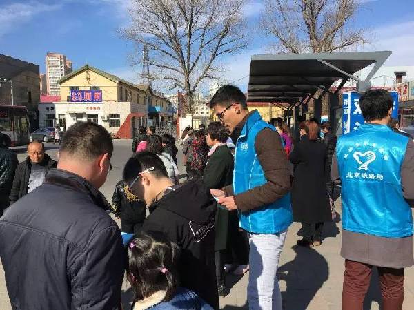 3月5日,北京铁路局团委天津片区组织36名志愿者在天津站开展了旅客疏导、购票指南、环境整治等活动。