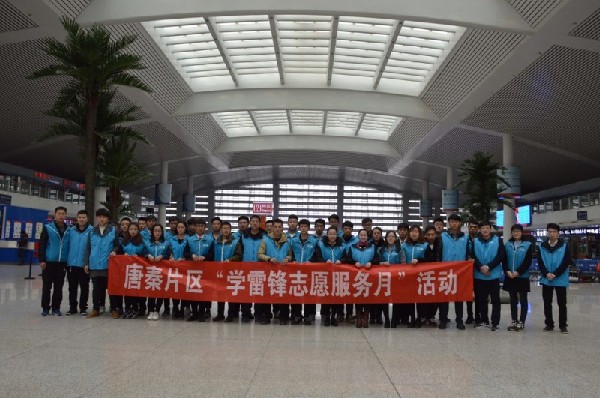 3月5日上午8:30,北京铁路局团委唐山片区在唐山站组织“学雷锋志愿服务月”活动启动仪式,本次活动主题为“志愿青春闪耀京铁”,共有来自片区各单位的40名青年志愿者齐聚唐山站,共同传承雷锋精神,将奉献和爱心传递给广大旅客。