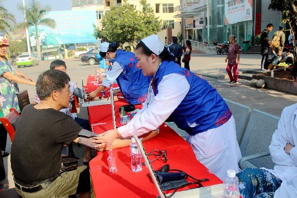 仪式结束后,由县医院、白沙消防、地税局、国税局等机关团支部组织开展便民服务活动,为广大市民提供量血压、手机贴膜、了解相关法律知识以及耳部检查等志愿服务,共为全县500余人服务,受到广大市民的喜爱并获得称赞。结合白沙双建,学校团委共组织600余名学生开展助力双建志愿服务活动。