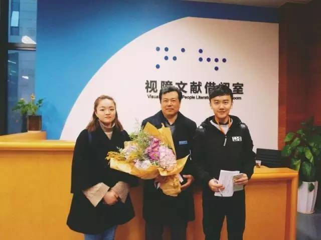 给长沙市图书馆年龄最长的工作人员送花
