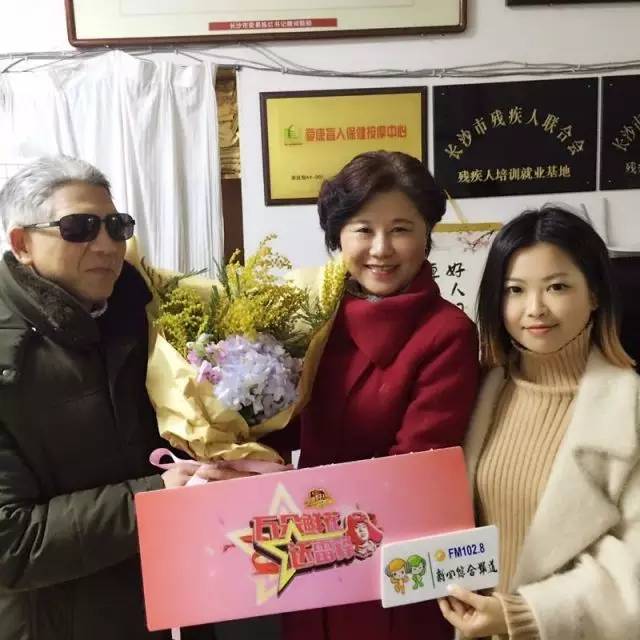 全国道德模范、"雷锋家乡小雷锋"周美玲正在湘雅医院住院,省青年文明号湖南人民广播电台的志愿者们受美玲同学好友委托,把鲜花送到了周美玲的手里。