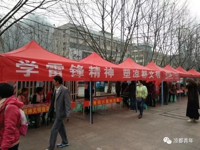 六盘水市:3月3日,团市委在黄土坡开展了“学雷锋精神·展青春风采”六盘水市青年志愿者集中宣传活动。活动现场开展了青年志愿者注册咨询、志愿精神宣讲、志愿服务项目宣传、志愿故事分享和“两法一条例”宣讲等服务,通过发放宣传单页、现场讲解、与志愿者互动等内容丰富、形式多样的宣传方式,吸引了大批青年市民注册志愿者。